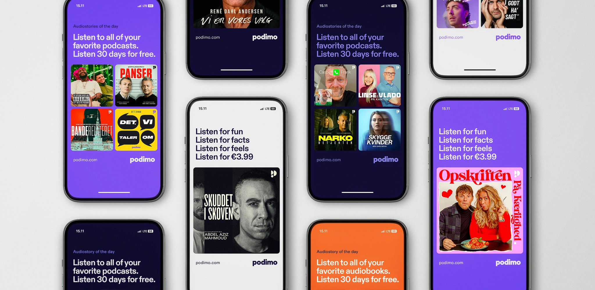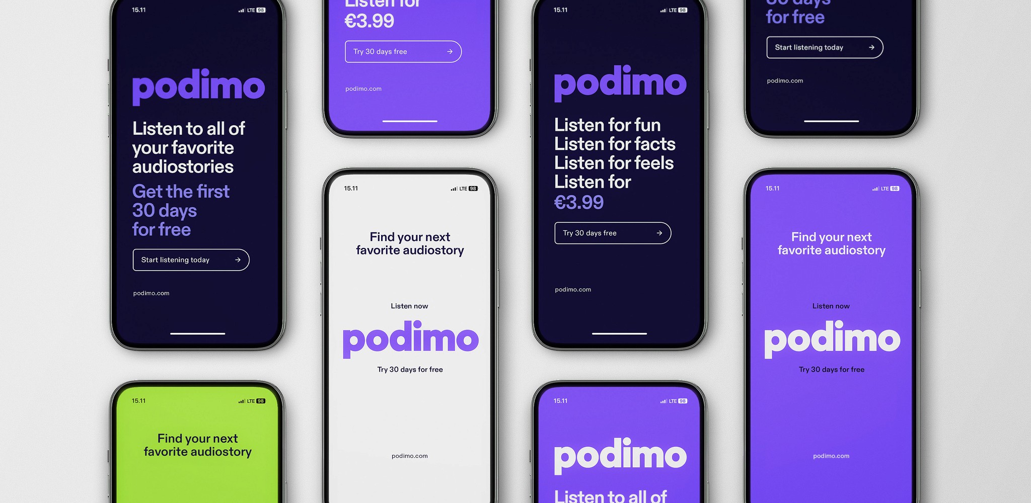 Rebranding of Podimo, transforming the company’s initial visual identity – built on the go – into one that continues to thrive today